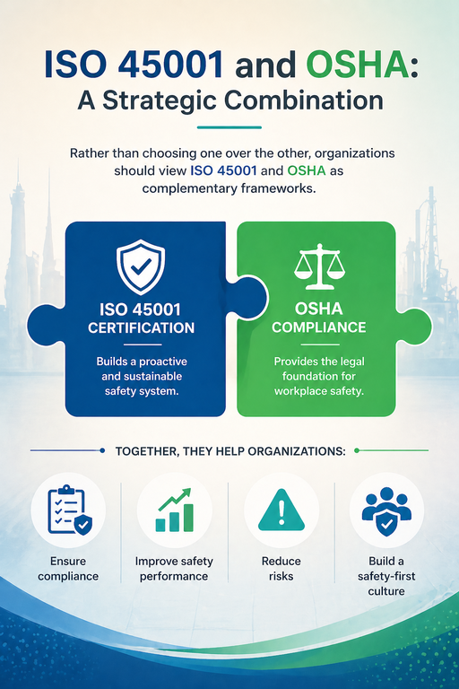 OSHA provides the legal foundation for workplace safety, while iso 45001 Certification builds a proactive and sustainable safety system.